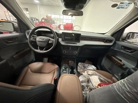 2022款福特Maverick独行侠内饰设计与传统福特皮卡有着明显的不同,采用了更贴乘用车的设计理念,配有全液晶仪表盘、悬浮式大尺寸中控屏、旋钮式换挡结构等,并采用了黑色+棕色的双色主题。