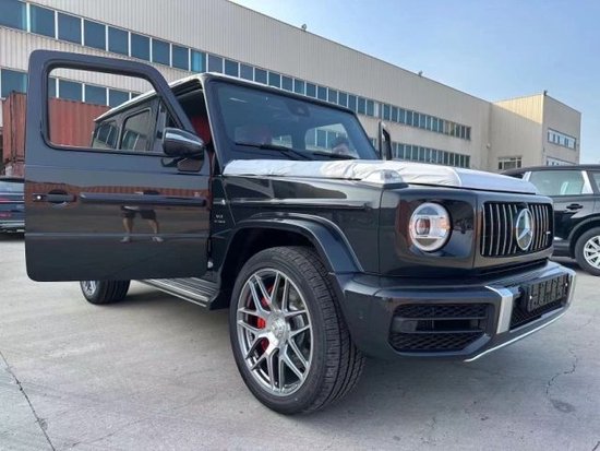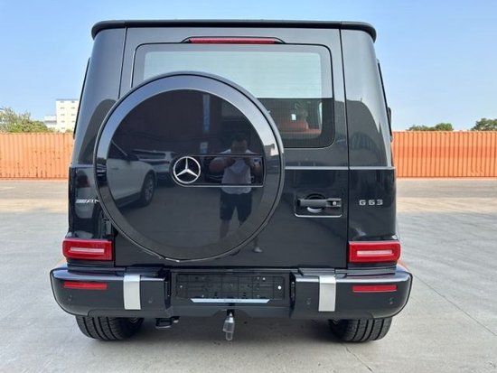 2023款奔驰G63 (配置|询价)独特的外观造型设计,经过重新设计的前进气格栅与两侧圆形大灯相互呼应,整个前脸的造型更为抢眼。进气格栅的镀铬采用了镂空的设计,保险杠也经过了重新设计,让新款G63的前脸看上去更为粗犷,氙气大灯下方还增添了时下流行的LED日间行车灯设计,看起来更具时尚感。