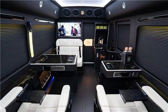 丰田考斯特12座改装商用车在座椅设计上更注重舒适性和昂贵追求,360 可旋转的航空座椅,配备高档办公桌,方便我们的办公和娱乐活动。华通丰业丰田考斯特改装商用车也可以使用完全进口的埃尔法 (配置|询价)座椅,配备通风暖气和电动脚底支撑等设备。为我们的旅行提供一个舒适的环境,减轻旅途中的疲劳。