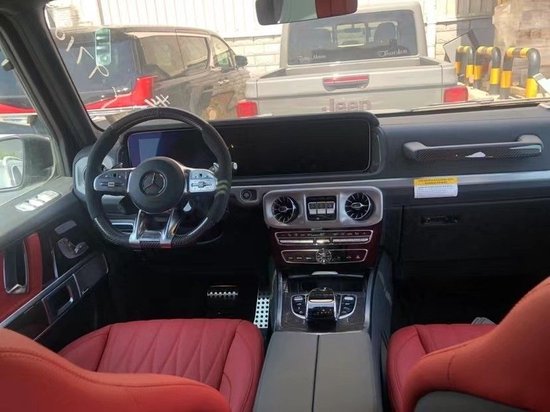 奔驰G63豪华精致的真皮包覆提供了足够的舒适性和支撑性,通风和加热功能让乘客免受高温和寒冷的煎熬。中控台多处均采用碳纤维材料覆盖,带彩色TFT显示屏的AMG仪表盘、AMG主菜单和单独的挡位显示器以及采用白色照明的AMG门槛。名贵的选材及精湛的内装令人拍案叫绝。