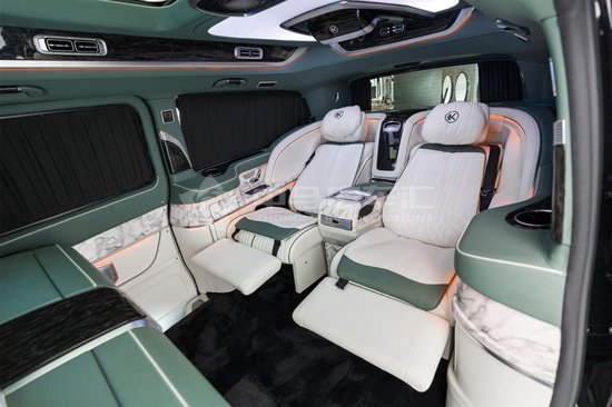 克蒂翔翼MH9奔驰商务车打开电动侧滑门,翔翼浮雕内饰设计,将隔断、立柱、内顶环舱配合外观包围的同设计语言,体现环抱之意。三色顶灯:琥珀黄、冰晶蓝、极光白三色切换。星空卷帘:368颗手工缝缀七彩光纤,繁星似锦,四种模式随意切换。并可提供12星座、12生肖个性化定制服务,与众不同。吸顶镶嵌式控制台,设计灵感源于飞机驾驶舱,体现操作的科技感,方便乘客操作,简单而高级。为了保障车内人员的隐私,不仅有隐私玻璃,更有电动窗帘环抱一周。