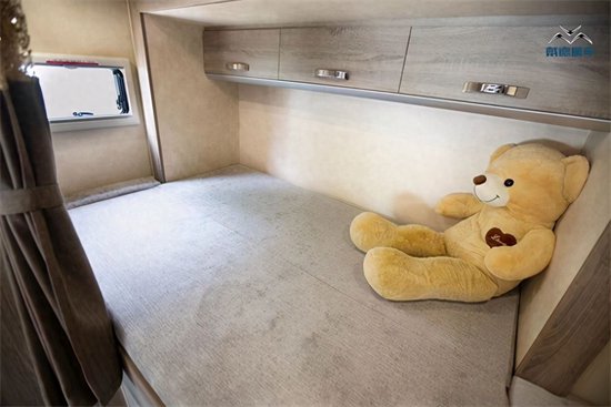 戴德车辆有一个额头床,额头床的除了两边的侧窗,整个顶部没有开任何天窗。因为车子在保温隔热方面做到极致,车子顶部的最大厚度达到七厘米。不开天窗的目的是为了不破坏车内的保温效果,此外,戴德的设计师认为,开了天窗,不能阻得紫外线,而且天窗会有冷凝水,会滴漏到床上,在后尾床铺的位置亦是没有窗户,设计师是这样的一个设计理念,这也是戴德所特有的。