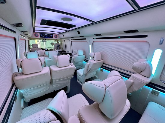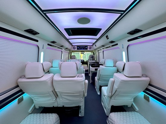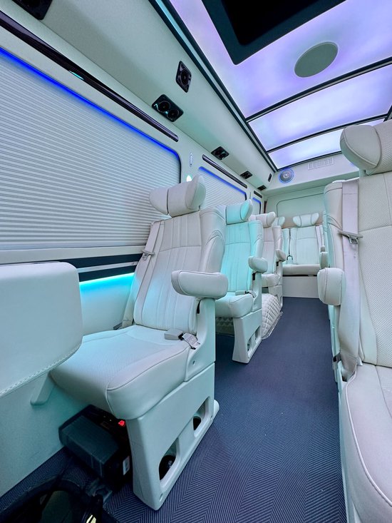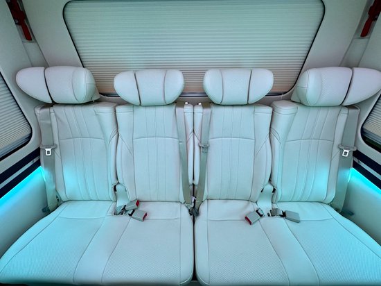 整车也有一个航空大座椅,配有通风按摩的功能,这也是老板座椅,还额外有两个单独的办公桌,这样的布局非常适合老板带领员工外出团建,或者外出谈生意,座位数多,可以一车能够解决,空间大,要是长途累了,还能站起来活动活动身体。后面的座椅虽然没有航空座椅坐的舒适,但是整体的乘坐感也还行。周边的电动窗帘,根据需要开启和关闭。顶部的顶灯和氛围等,也是多款颜色可以调节,跟随需要而变化。