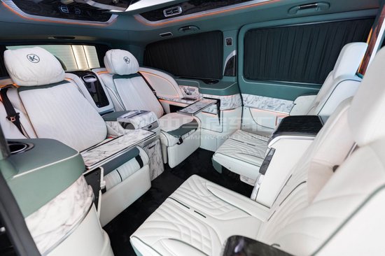 克蒂翔翼MH9奔驰商务车打开电动侧滑门,翔翼浮雕内饰设计,将隔断、立柱、内顶环舱配合外观包围的同设计语言,体现环抱之意。三色顶灯:琥珀黄、冰晶蓝、极光白三色切换。星空卷帘:368颗手工缝缀七彩光纤,繁星似锦,四种模式随意切换。并可提供12星座、12生肖个性化定制服务,与众不同。吸顶镶嵌式控制台,设计灵感源于飞机驾驶舱,体现操作的科技感,方便乘客操作,简单而高级。为了保障车内人员的隐私,不仅有隐私玻璃,更有电动窗帘环抱一周。