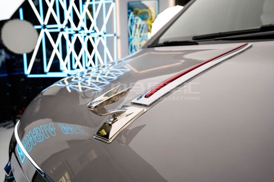 克蒂翔翼MH9奔驰商务车外观时尚前卫,车头前部设计灵感来自于凌峰展翼升降立标,整个包围以车辆中心形成中心对称,101颗羽翼电镀点排列其中,形成超大尺寸立体悬浮式飞翔羽翼,以101颗电镀装饰点向外发散,给人以饱满的立体感。车辆开始行驶时,升降立标会自动落下,收纳在发动机舱碳纤维保护壳内。大面积镀铬装饰让其看上去有着极强的辨识度。