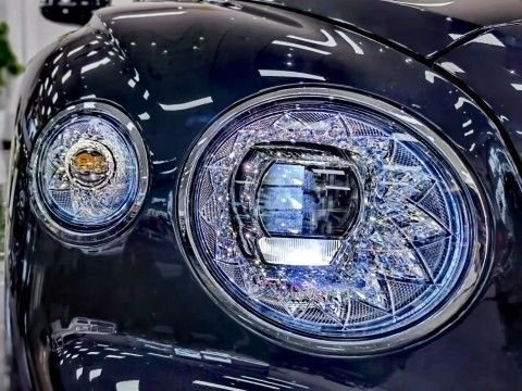 宾利飞驰 (配置|询价)从外观来看,彰显新款标志性的无疑就是全新设计的飞翼式升降立标,立标下方装有电动升降装置,同时,立标内部还装有发光装置,在夜晚看上去晶莹剔透,另一项全新升级的便是LED大灯加入了施华洛世奇水晶切割工艺,看上去更加的璀璨夺目。