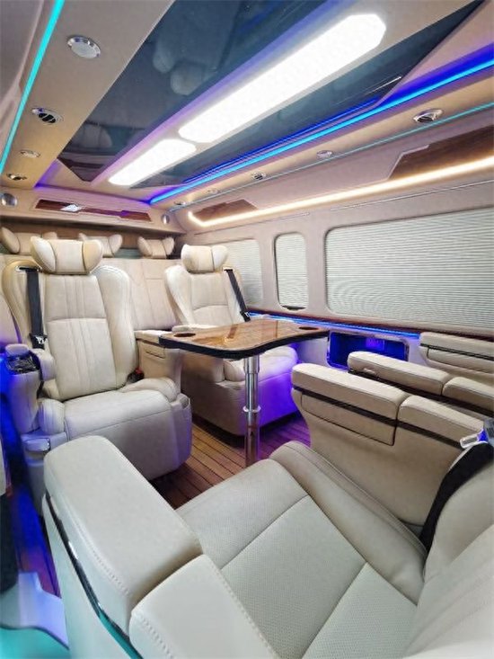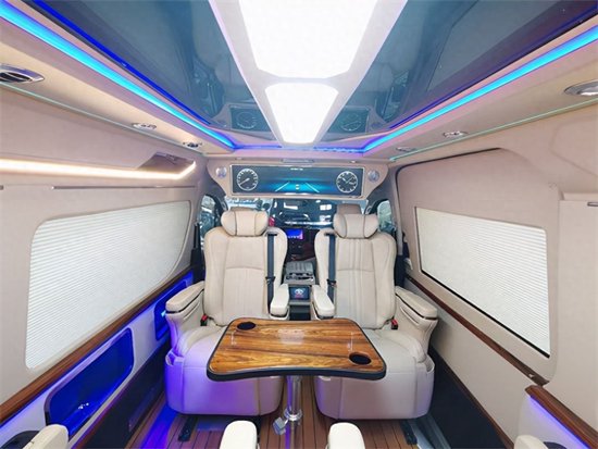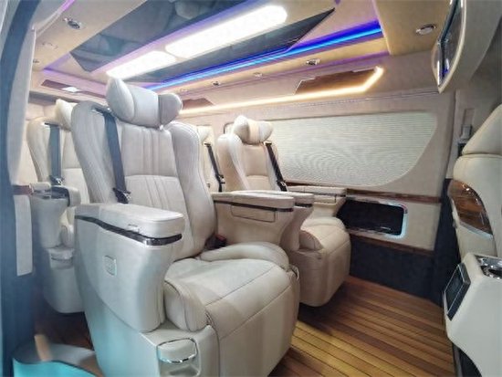 此外,由于整车的空间较大,所以,全面升级后舱暖风系统,就算在寒冷的冬季也能享受到温暖。顶部方面,升级全车灯光智能触摸控制系统,白色顶灯配合着周边的多色氛围灯,气氛感十足。在氛围灯光上,车门板也有多处加装,使其真正有豪华头等舱的感觉。全车升级空气净化系统以及无线充电及有线充电,而且为了保证车内的隐私在车窗方面加装了车帘,此外,看不见的地方呢,全车也升级了,加强型的隔音和隔热。