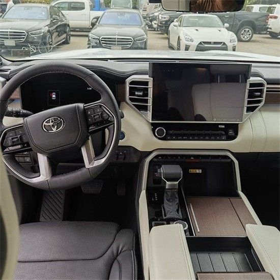 2023款丰田红杉内饰采用了人造木板或光面漆装饰。座椅材质可选择织物、SofTex、皮革、TRD Pro Softex 和半苯胺皮革。根据不同等级,中控屏尺寸从8英寸到14英寸不等,配备了Toyota Audio Multimedia 系统,拥有无线 Android Auto 和 Apple CarPlay功能。