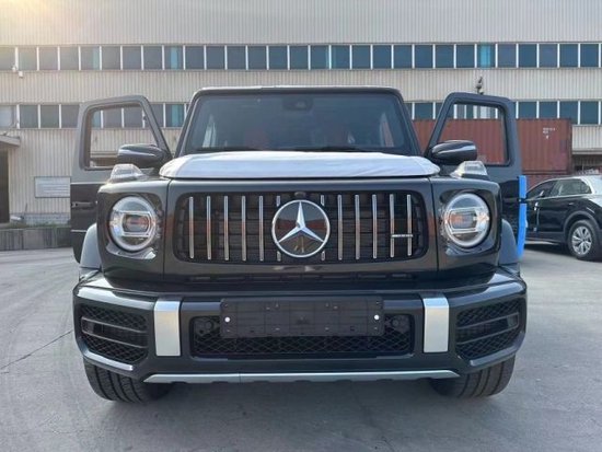 2023款奔驰G63 (配置|询价)独特的外观造型设计,经过重新设计的前进气格栅与两侧圆形大灯相互呼应,整个前脸的造型更为抢眼。进气格栅的镀铬采用了镂空的设计,保险杠也经过了重新设计,让新款G63的前脸看上去更为粗犷,氙气大灯下方还增添了时下流行的LED日间行车灯设计,看起来更具时尚感。