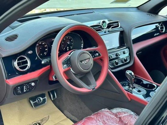 配置:旅游配置 金属油箱和机油箱盖 座椅菱形格纹绗缝 宾利徽章座椅刺绣(Azure) 运动脚踏板 标准刹车碟配黑色卡钳 镀铬前保险杠格栅 反衬色缝线 厚绒毛地毯衬垫 (前后排) 后门电动关闭功能 氛围灯 照明式迎宾踏板 选配: 1⃣️流光菱形格套件 2⃣️22 英寸十幅铝合金抛光轮毂 3⃣️3 辐式双色加热真皮镶边方向盘 4⃣️Mulliner LED 后视镜迎宾照明灯 5⃣️木饰面板金属饰件 -贵族黑