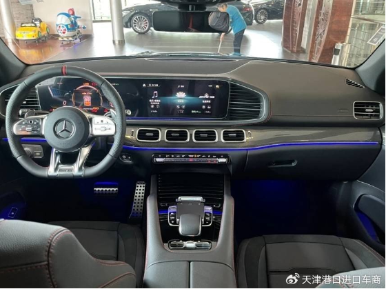 24款奔驰GLE53 (配置|询价)Coupe内饰方面,双连大尺寸悬浮液晶屏,贯穿式的特殊质感面板装饰,长方形的空调出风口等细节都不会缺席,在此基础上,毕竟是一款AMG车型,新车采用了带有AMG标志,换挡拨片,三九点钟翻毛皮材质的平底方向盘,加上随处可见的翻毛皮和打孔真皮穿插的门板和座椅装饰等细节,以及纯黑的内饰配色,显示出更强的战斗感。