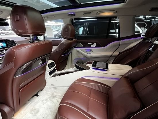 贯穿式中控台液晶屏在迈巴赫GLS身上为标配,不过新车的MBUX车载系统为迈巴赫GLS定制了专属开启画面以及UI画面,并且与后排乘客独立娱乐系统联动,乘客也可根据自己的需求来调整界面,另外新车还集成了Mercedes me系统,可远程控制车辆