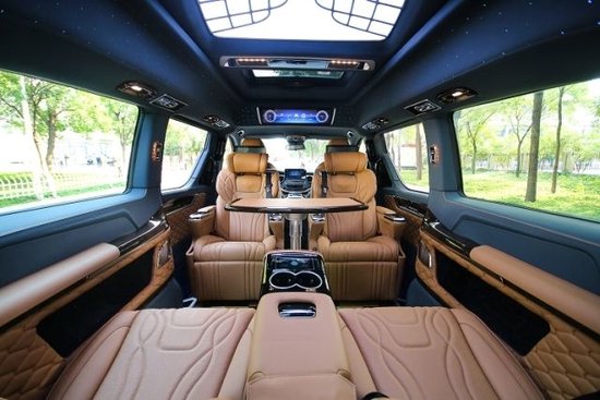 22款奔驰V250L隐藏六座系列后排座椅为总裁沙发座椅(根据人体工程学设计)一键式展开一键收回(记忆功能)自动找到最舒适的角度,舒适度和随意性更强,双侧壁设计集成丰富配置,多媒体触摸屏、商务桌板、多媒体接口、压缩机车载冰箱等办公、娱乐设备给您带来充足乘坐享受,精湛工艺可靠品质树立威霆 (配置|询价)商务房车新典范。