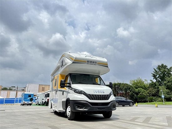 采用“龙”式小额头设计弱化了大额头的笨拙感,更重要的是提升了内部17%使用空间。第二点,车身拉花相比之前进行了优化,这款车以金色和黄色为主色调;第三点就是整车的的细节方面采用开模工艺,相比旧款,模块化的地方增加了。车身技术层面,选用的是5公分热断桥PVC墙体,额头区域为双层PVC包覆,保温性能更好。整个车身外尺寸为5990×2490×3180(mm),内高/宽分别为1940mm和2210mm。133-7022-6676