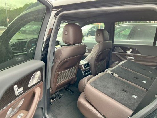 奔驰GLS450详细配置: 22款 7座 AMG包 抬显 电吸 配置:暗夜包,运动包,抬头显示,电吸门,全景天窗,方向盘加热,21寸AMG轮毂,7座,黑内顶,标配: 前排加热通风记忆电动座椅、电动尾门、无钥匙进入、通过 Mercedes me 移动远程启动、一键启动、4区自动空调、电动折叠第三排座椅、多功能电动方向盘、电动折叠后视镜、柏林之声、64 色 LED氛围灯、苹果CarPlay、安卓汽车、ECO 启停系统、带换档拨片的 9速 自动变速箱、底盘升降,4MATIC 全可变四轮驱动、自适应制动技术、空气悬架、自适应阻尼系统 (ADS)、主动制动辅助、注意力辅助、警告辅助的盲点辅助、预安全、预安全声音、几何多光束大灯、自适应远光灯辅助、360环车影像、主动泊车辅助系统、雨量感应雨刷。