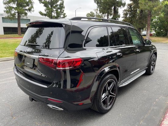 2023款奔驰GLS450的侧面我们可以看到不管是它的行李架和窗边的饰条等也采用了熏黑的设计。并且通过它成熟的腰线设计让它的车身更具雕塑感,力量感还是很足的。它的车门还带有电动吸合功能。下方采用铝制踏板,可以让人们上下车更加的方便还能增加它侧面的层次感,