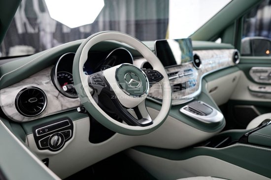 全新奔驰克蒂翔翼MH9的内饰方案以双色为主,中控台中央的悬浮式面板集成了空调出风口、多媒体控制区和大尺寸中控显示屏等功能,搭载MBUX信息娱乐系统。前排不仅增大驾驶空间,提高驾乘体验;还升级座椅舒适度,带智能座椅靠背防夹功能。