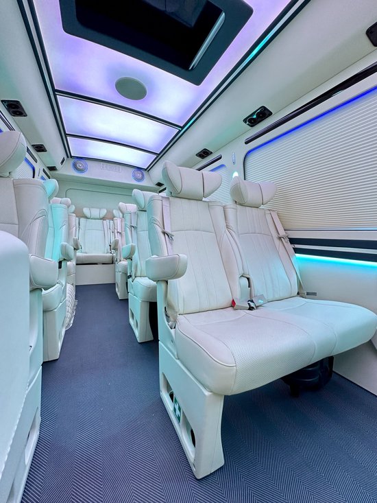 整车也有一个航空大座椅,配有通风按摩的功能,这也是老板座椅,还额外有两个单独的办公桌,这样的布局非常适合老板带领员工外出团建,或者外出谈生意,座位数多,可以一车能够解决,空间大,要是长途累了,还能站起来活动活动身体。后面的座椅虽然没有航空座椅坐的舒适,但是整体的乘坐感也还行。周边的电动窗帘,根据需要开启和关闭。顶部的顶灯和氛围等,也是多款颜色可以调节,跟随需要而变化。