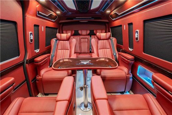 丰田海狮整车(华通丰业)升级了加强型的隔音隔热处理,车内带空气净化系统,无线充电系统。在进门侧加装了氧化铝脚踏带迎宾灯的,(华通丰业)整车都是采用纳帕级皮质进行包覆的,侧壁桃木装饰,手动百褶窗帘,后舱暖风系统,最后说说棚顶灯光,这个有智能触摸控制系统。灯光超级棒。丰田海狮车内座椅面料考究,前后座椅间适度,座椅靠背角度可灵活调节阔约的头部和腿部空间让乘坐自在舒适。同时,为了满足高端商务接待能力,丰田海狮推出了不同配置选装包,车内内饰的升级为乘客带来奢华舒适的出行享受。