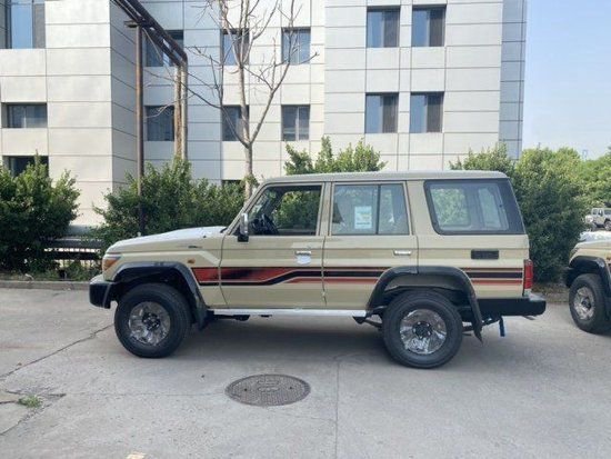 23款 中东版丰田LC76绞盘、涉水喉、桃木内饰、桃木方向盘、棕色真皮座椅!5速手动变速箱 、130升油箱、分时四驱、前差速器锁、后差速锁、16英寸越野铝合金轮毂265/70R16、刹车配备:前盘。后鼓、前悬螺旋弹簧、后悬板式弹簧 、越野性能:ABS+VSC+BA+EBD+HAC+ATRC、2气囊、彩色保险杠、白车/黑杠、高位刹车灯 、镀铬外后视镜带电动调节 、侧踏板 、数字时钟、五座 、半自动空调 、熏黑大灯、电动门锁 、电动车窗 、收音机 CD 、蓝牙 、双扬声器 、胎压监测 、USB快速充电 、前雾灯 、后雾灯 、手套箱锁带钥匙 、日行灯、徽章、脚垫、黑色轮眉、散热格栅、原车新款彩条!