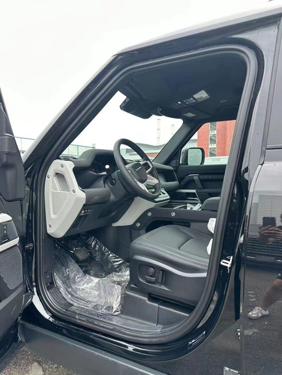 23款柴油卫士 110 D200 SE,黑/黑, 配置: 雷测,20寸轮毂,寒冷气候包(方向盘加热,后排座椅加热),前排座椅加热,中央差速锁,MERIDIAN音响,LED大灯,前排14项带电动调节座椅 12项电动 2项手动,空气悬挂,黑内顶棚,同色车身门把手,折叠后视镜,环车影像,底盘升降,液晶仪表,智能卡。