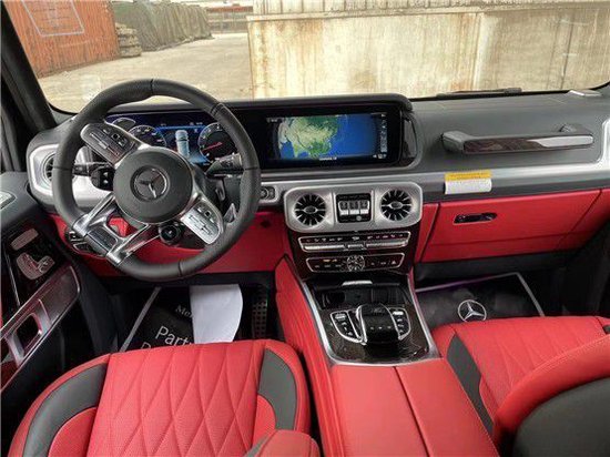 23款奔驰G63 (配置|询价)内饰方面,采用家族化设计风格,新样式三幅式AMG专属方向盘、仪表盘与中控屏采用连屏设计,视觉上非常有科技感。车内使用了大量的银色哑光饰条的点缀,看上去很有运动氛围,同时圆筒式的空调出风口和副驾前方的扶手,进一步展示了新车的越野风格。