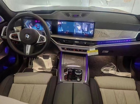 全新23款平行进口宝马X7我们在看看它的内饰表现。从全新一代宝马7系 (配置|询价)开始,宝马在内饰上的布局也宣布正式进入到了新纪元。与7系一样采用了贯穿式的液晶屏,但是为了能与SUV相匹配,整个中控台的布局相对比较高耸。包括两侧的空调出风口也都采用了双元素,感觉上比7系更加的灵活!三幅式的方向盘略微的有些突兀,这是小编相对不满意的地方!再看档杆,以往的水晶档杆已经换成了现在这种旋钮式的布局,整体上的风格明显更加简单!而且加入了非常多的按键区,带来的便捷度应该会更好!