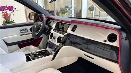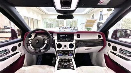 劳斯莱斯库里南内饰延续了全新幻影 (配置|询价)的设计风格,整体用料依旧一如既往的奢华高贵,中控采用大面积实木打造,配合方向盘上的实木点缀,既复古又豪华。中控屏幕尺寸为10.2英寸的屏幕,轻触车门把手上按键就可以电动关闭,后排控制台与前部是断开的,在狭窄环境停车后排乘客可以选择任意一侧下车。