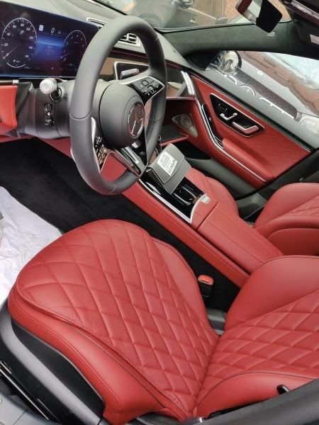 22款奔驰S500 配置:金属漆,专属Napa真皮座椅(红色菱形格) ,黑色鹿皮顶,21寸AMG V-型多幅轮毂(方向盘加热,后排电动调节,座椅记忆,后排座椅加热,主动通风,前后排中央扶手加热,门板扶手加热),钢琴漆拉丝内饰后轮4.5度转向主动氛围灯,黑色虚线装饰中央扶手箱,轮毂锁,急救包,前排MBUX内部辅助,高性能降噪轮胎,3.0直列6缸涡轮增压48V轻混发动机,前排带按摩功能多轮廓座椅,前排座椅腰部支撑调节,电动后窗遮阳帘,12.3寸液晶仪表盘,12.8寸中控OLED触摸屏,主动氛围灯,门槛饰板发光,无钥匙进入,无痕门把手,电吸门,防紫外线玻璃,全景天窗,实景导航,环影,无线充电,无线电话集成,苹果carplay,安卓汽车,的前LED奔驰LOGO,柏林之声环绕3D音响,客舱空气平衡香氛系统,加强气囊系统(第二排气囊),主动刹车系统,注意力集中系统,主动车道保持,碰撞预警系统,盲点系统,LED主动大灯系统,主动停车辅助,雷达测距