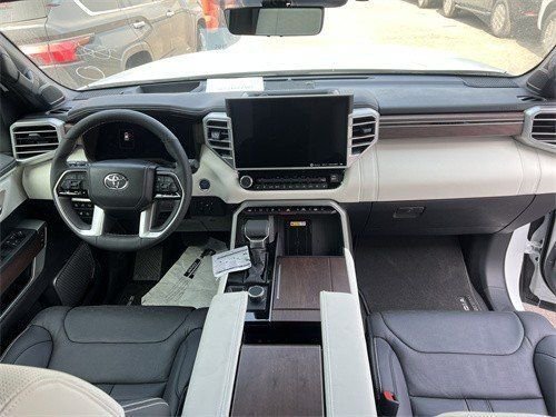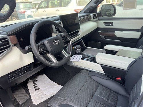 23款丰田红杉车内采用的是四辐式多功能方向盘,并保留了很多物理按键,足以满足驾驶时想要的操控感,车内的科技氛围是通过12.3英寸的全液晶仪表盘和14英寸的中控屏来实现的,中控屏两侧的空调出风口,虽然没有采用时下流行的贯通式设计,但在中控台上对称排列也别有一番风味。另外顶配Capstone车型的内饰将会采用更加豪华的黑白配色方案,并搭配胡桃木装饰面板。更多详情请添加: 15502249267 孙经理 同微信