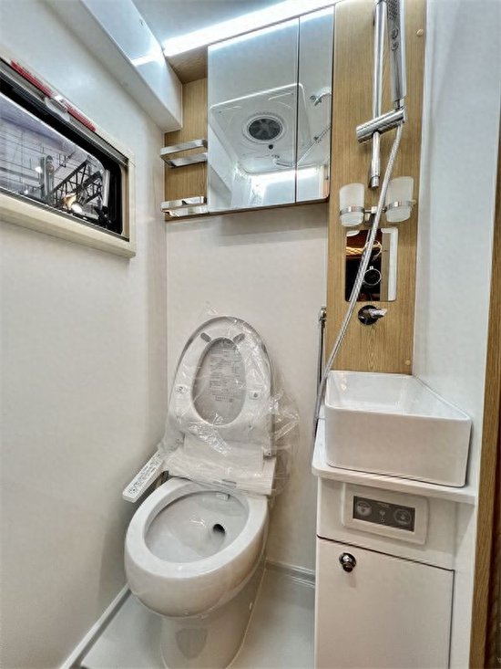 后床采用乳胶+绒布床垫,触感良好,厚度也适中,整体舒适性不错。后床延展之后的尺寸为2180×1200(mm),拓展舱部分最大长度1800mm。床头内侧带有双USB充电接口、220V电源插座、薄膜式灯光触控开关。卫生间部分在全新E途pro max上依然很熟悉,酒店式卫生间,匹配智能马桶、MAXX换气扇、顶部储物柜、侧窗、独立淋浴系统,尤其是带有固定的洗漱台和洗脸盆,而这一切设备也是当前C型房车中算的上最豪华的配置了。好了本款戴德E途PROMAX进口依维柯双拓展房车小峰哥就同大家介绍到这里。阅览世间美好,带您跨越山河,品味人间烟火,给您一个移动的家 -我是小峰哥