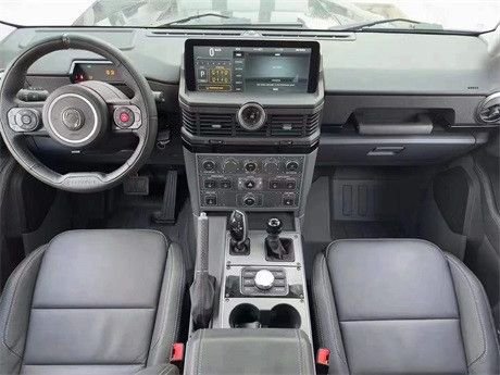 英力士掷弹兵3.0内饰方面,取消了仪表盘的设计,配备12.3英寸中控大屏,下方为空调出风口,而且车内保留了大量的实体按键,两幅式多功能方向盘造型时尚,下方有着密密麻麻的物理按键和旋钮,用于控制灯光、座椅加热、空调调节等功能,越野功能按键如前锁、后锁、越野模式等按钮集成到了后视镜位置,中央通道部分则是机械手刹和宝马的鸡腿挡杆,机械式手刹以及空调控制面板等元素,处处透露着朴素的越野车风格。新车的座椅采用五座设计,座椅由皮革和织物材质拼接而成,并带有简洁的缝线,更具实用性(可选装真皮座椅)。