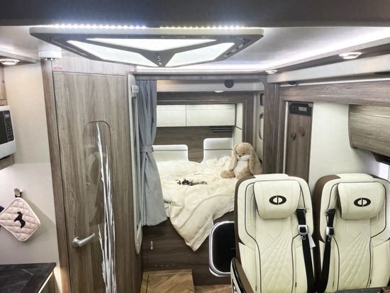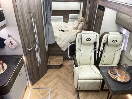 进口依维柯New Daily底盘的驾驶室体现的是精致和商务气息,尤其是戴德E途系列房车多以商务大气的稳重形象展示。新车搭载一款3.0T柴油涡轮增压发动机,匹配8AT变速箱,峰值扭矩430N·m,最大功率125kW。安全辅助系统方面,如胎压监测、防侧风系统、坡道辅助系统,自适应巡航,牵引力控制系统,自动大灯,自动雨刷器等等,可以说它的丰富程度在一些轿车上都少见,依维柯更多的是想让这款车底盘车型轿车化,以适应改装房车之后对应驾驶舒适性的考量。133-7022-6676