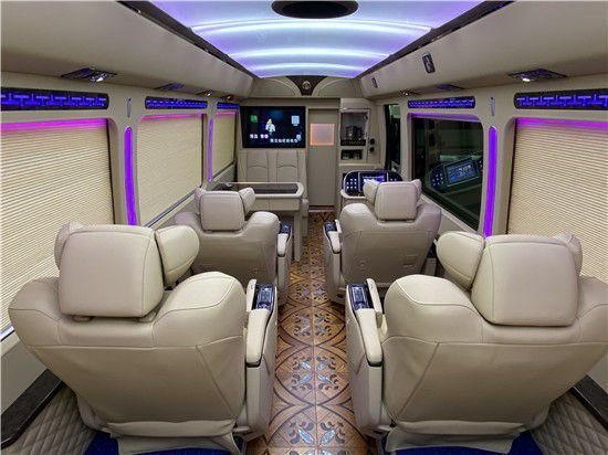 12座至尊版版中用了四张日本纯进口埃尔法 (配置|询价)顶配航空座椅,座椅不但舒适而且具有很多实用功能,比如座椅加热、座椅通风、座椅记忆、脚拖(有二级脚拖)、烟灰缸、折叠隐藏式书桌。丰田考斯特在内饰大的设计上增加了隔断的设计。隔断的增加有这样几点好处,首先从美观上来说,丰田考斯特增加隔断可以让驾驶席和乘客席之间成为两个独立的空间,我们可以尽可能的在内饰的设计上增加自己喜欢的色彩或者装饰。