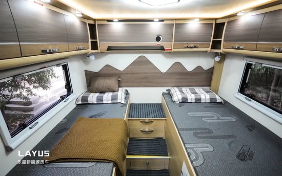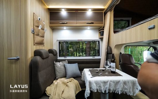 进入乐星新能源房车的休息区,你会感受到温馨和舒适。精心设计的空间布局提供了舒适的座椅和休息区域,供旅行途中的乘客放松身心。舒适的床铺和宽敞的储物空间使旅行更加便捷,让你感受到宾至如归的温暖。