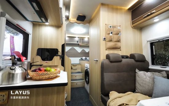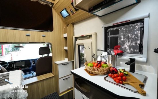 厨房是乐星新能源房车的亮点之一。它配备了现代化的厨具和设施,为用户提供了烹饪美食的便利。不论是简单的早餐还是丰盛的晚餐,你都可以在这个小小的空间里尽情展现厨艺。