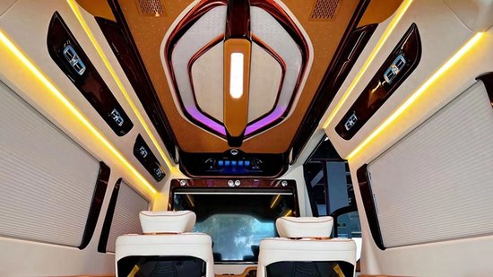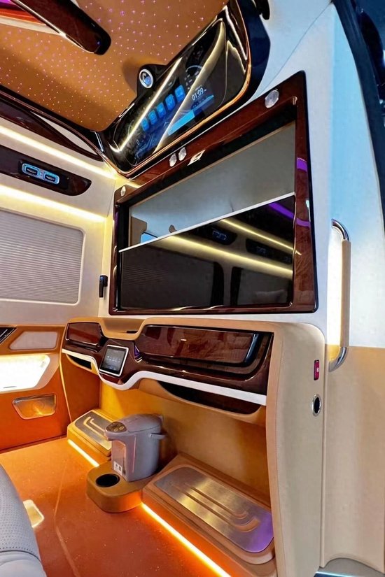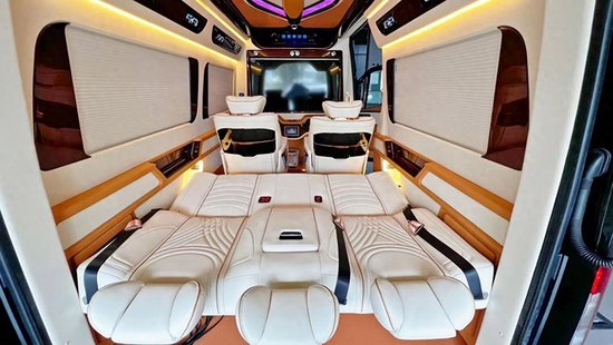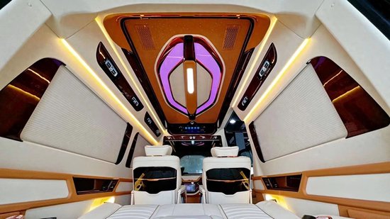 经典款的7+2版内饰设计以舒适为主,为乘客提供宽敞的座位空间。而带吧台茶台的7座版则结合了商务与奢华,满足商务会客和休憩的需求。对于喜欢出门旅游的用户,带卫生间带简易厨房的6座旅居版能够提供更多便利和舒适。此外,进口奔驰斯宾特的内饰改装定制颜色方面更是能根据客户的需求进行任意定制,为用户打造独一无二的豪华空间。