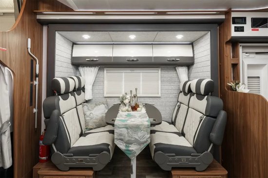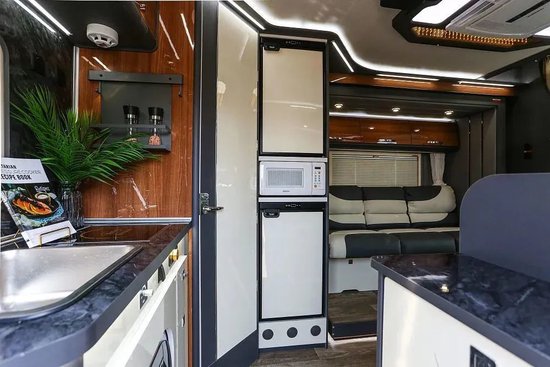 有人会不喜欢“开门就是床,回家就是躺”的布局,尊领DT PRO进门映入眼帘是一个派头十足的大沙发,整体视觉感受美观,满足会客、聚会、商务洽谈等需求;沙发拉开可以直接变成一张双人沙发床,再加上额头双人床以及卡座区拼床,整车三张床位满足家庭居住需要。