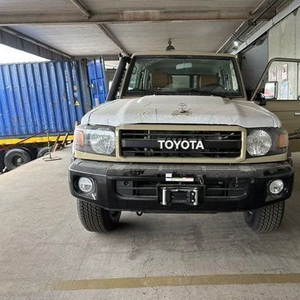 23款酷路泽LC76 4.0 汽油 70周年纪念 配置:汽油4.0 、5座、5速手动变速箱 、130升油箱、手动分时四驱、双差速锁、8000磅绞盘、涉水器、轴头离合锁、16英寸熏黑轮毂、桃木内饰、桃木方向盘、2气囊、车身同色保险杠、全尺寸备胎、脱钩、电动天线、ABS+VSC+BA+EBD+HAC+ATRC、高位刹车灯 、镀铬外后视镜。带电动调节 、铝合金踏板、数字时钟、半自动空调 、熏黑大灯、电动门锁 、收音机 CD 、蓝牙 、双扬声器 、胎压监测 、USB快速充电 、雾灯、手抠箱出风口、脚垫、黑色轮眉、散热格栅、新款彩条。
