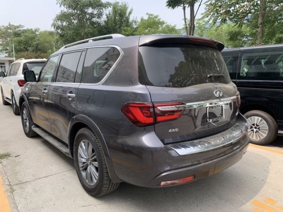英菲尼迪QX80 (配置|询价)的前脸设计非常简洁,目力所及之处,线条简洁、气场强大,气势上虽达不到咄咄逼人,但是唬人的能力依旧不容小觑。与老款车型相比,梯形进气格栅所带来的横向延伸感要比现款车型更加强烈,前大灯组的位置也有了明显的提升,而且发动机盖整体向前延长,这也直接带来了更为犀利的视觉感。气势上的强大绝不只前脸这么简单,对于QX80来说,其庞大的尺寸就是展现气场最佳的代表。现款车型长宽高分为别5303、2030和1927mm,轴距为3075mm,新款车型有过之而无不及。