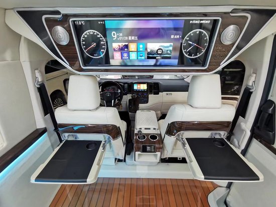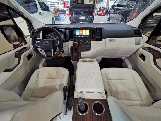 丰田海狮商务车在驾驶席的改装上更为了司机的方便和舒适进行了独特的设计,丰田海狮商务车对操作台增加了桃木的装饰,美观大方,对驾驶席的座位改装上也可以采用加大加宽加厚的设置,无论是驾驶还是乘坐,丰田海狮商务车通过自己对内饰的设计上,丰田海狮商务车充分体现了高贵和舒适的设计,为人们提供最舒适的乘车环境。