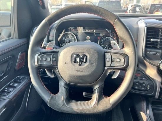公羊1500 22款 6.2 轩尼诗 TRX猛犸象内饰部分进一步强化了其高性能版本的形象,中控台和座椅随处可见的TRX标识便是最好的例证。同时,作为道奇家族的旗舰车型,新车还配备了12英寸竖置中控屏幕,除了支持蓝牙、导航和车载Wi-Fi等常见功能,还支持Apple CarPlay和Android Auto手机映射。