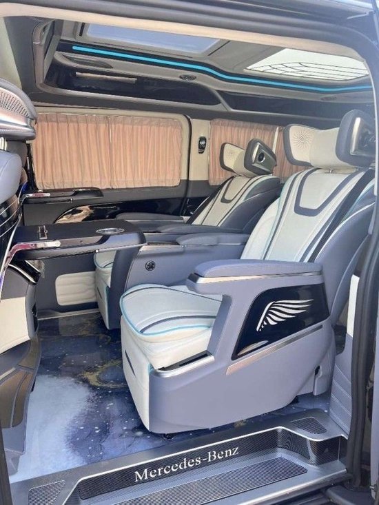 奔驰巴赫VS98S商务车系列改装隐藏六座炮筒式仪表盘,造型时尚,奔驰威霆商务车中央是一块高分辨率驾驶显示屏,科技配置还有超薄液晶电视、8.1寸独立悬浮屏、蓝光播放器以及DVB-T信号接收系统等。进口奔驰V250商务车中央扶手箱,被设计成了一个拥有最冷可达零下18度的车载冰箱,夏日出行更为便捷!还有多种辅助系统保护您的安全,例如:定速巡航系统、胎压监测系统、碰撞预防辅助系统、360度全景摄像头等等。