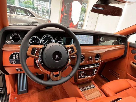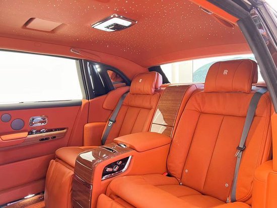 劳斯莱斯幻影加长版后排才是重中之重,电动折叠板和后排影院系统被巧妙的隐藏在前排座椅的椅背后,只需轻触按钮,便可以自如收放桌板和影院系统,带来完美的剧院体验。