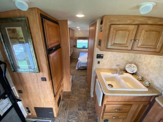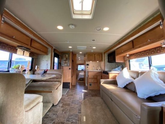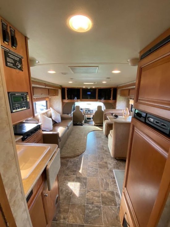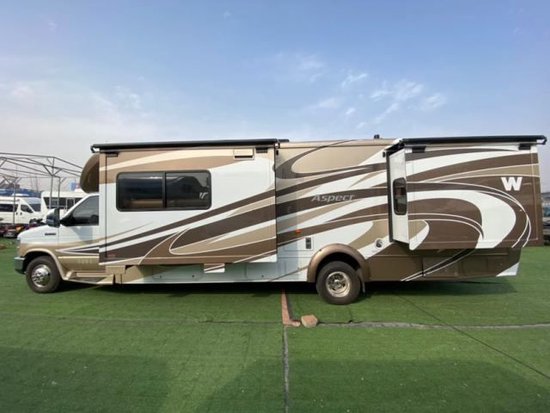 高级房车四驱福特E450房车温尼贝戈,车长9.6米,宽2.5米,高3.5米,车身重量6.57吨,动力上搭配6.8LV10发动机。 油箱容积为250升。扩展能力是其亮点之一,车厢两侧可以向外扩展,从而最大限度的提高了车内空间,在行车时还可以自动收缩回车体内。