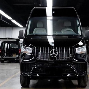 全黑色系的,外观三叉星辉的奔驰大标位于前脸正中央,最新国六车型,全国可任意上牌。这种斯宾特车型主要适用于公司的商务接待,或者是大佬日常出行的高品质生活。外观奔驰的大标就足以彰显他的身份。