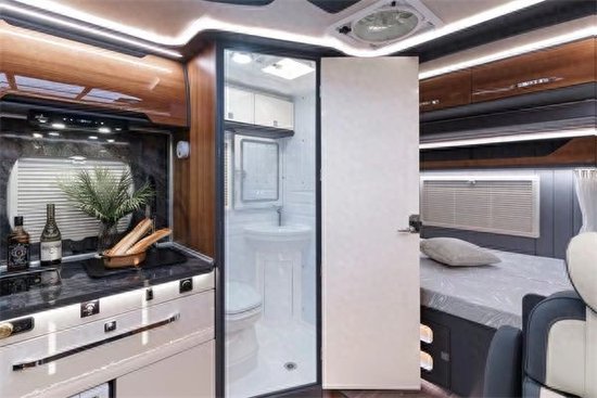 卫生间一体式吸塑开模设计,打开灯光内部非常明亮,内部进似1×1(m)的占地面积,在双拓展房车中算是比较宽敞的。尊领ST Pro车型还为卫生间配置了智能镜,不仅可以根据需求调节灯光的亮点,智能镜具有加热防起雾功能,即使在热气蒸腾的环境,也不影响镜子的正常使用。卫生间顶部配备了一组两个吊柜,用于日常化妆品等物品的收纳,220V电源插座被防水盒保护了起来,避免溅水发生危险。车内采用10kW液体加热器,大功率加热,进水水温在5℃时,可以持续维持热水水温在35℃左右;进水水温在15℃时,可以持续维持热水水温在41℃左右。好了本款亚特尊领ST PRO版双拓展房车小峰哥就同大家介绍到这里。阅览世间美好,带您跨越山河,品味人间烟火,给您一个移动的家 -我是小峰哥