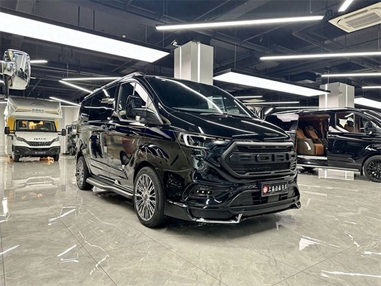 在外观上,福特黑武士沿用的是非常具有运动风的黑武士前后套件,福特大字母中网非常的吸引眼球,。整车尺寸:4974mm/2095mm/1986mm,好停车,能安全下地库,这也解决了很多商务车不能够下地库的痛点。由于福特的前车头比较短小,所以内部的空间就变大,即使车长不超过5米,内部空间在7座商务车中也是非常宽敞的存在。全黑的外观一方面有商务车稳重,造型的前脸也增加了运动的氛围感。新款可选装19寸轮毂。