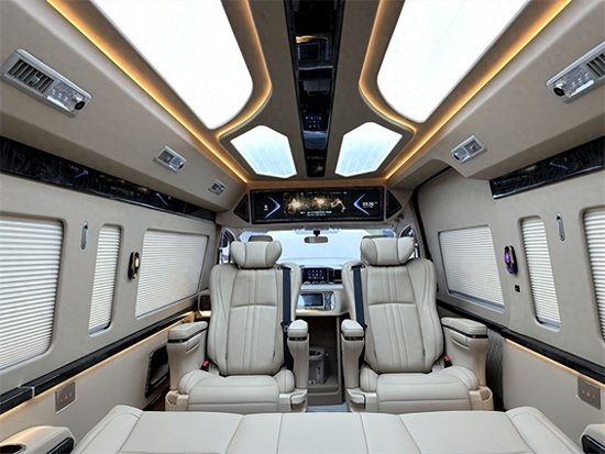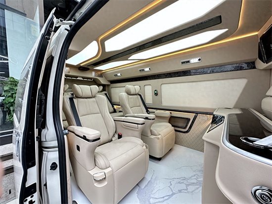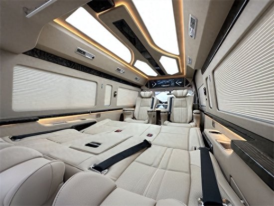 丰田海狮的航空座椅有着超乎寻常的尊贵感和舒适感,侧壁更换意大利顶级真皮包袱手感极佳,侧壁菱形格的设计使整车层次分明立体感更强。侧窗豪华电动窗帘,面料阻燃隔热、隔光、隔音。顶棚更换意大利顶级麂皮绒零污染零伤害的环保材质,搭配桃木件及氛围灯的组合,营造出温馨舒适的乘车环境。
