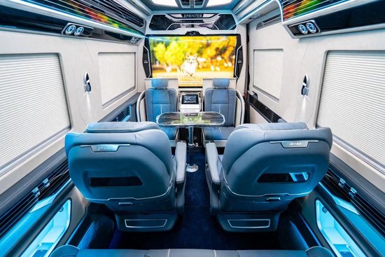 这台奔驰斯宾特商旅版采用全隔断的布局,高清升降55寸曲屏电视,一键开启。俯视整个奔驰斯宾特商务车内饰,进口柏林音响给展示完美的听觉盛宴。商务车华丽的吧台,整车随行时钟。这些组成的隔断部分不但可以保证后排空间的私密性,也能在后排享受一个娱乐氛围,看电视,听音乐,放松全身心。